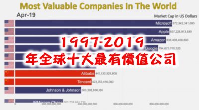 這視頻根據全球十大最有價值的上市公司市值在1997年至2019年進行排名。